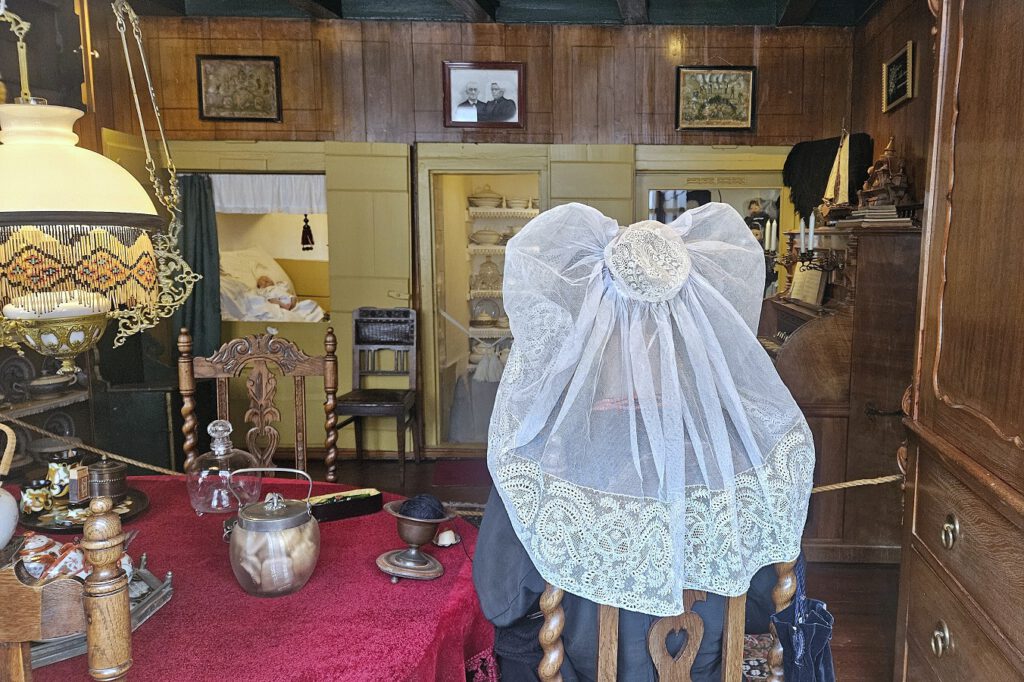 De zondagse dracht Tholen: De naad zit daarbij op de rug.